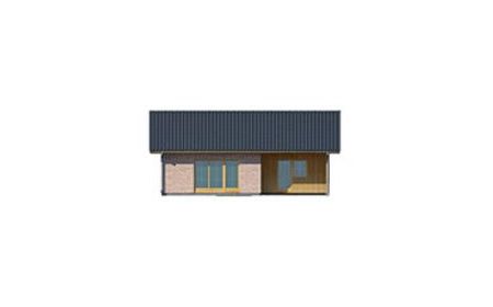 Přízemní rodinný dům se sedlovou střechou. Skvělá volba pro ty, kteří chtějí maximálně využít prostor. Výhodou této přízemní dřevostavby je dodržený vysoký komfort na minimální zastavěné ploše. Oblíbeným prvkem přízemních rodinných domů je otevřený průchod na zahradu nejen z obývacího pokoje, ale i z ložnice dřevostavby. Je ideálním řešením pro 3 – 4 člennou rodinu.