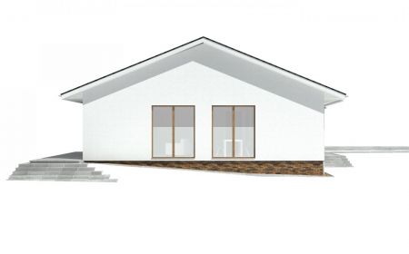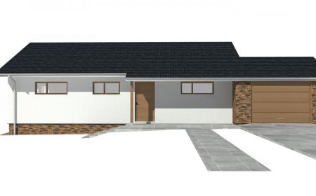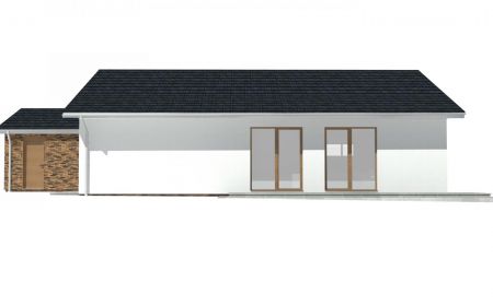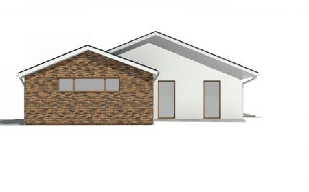 A single-storey house with a gable roof. It offers an easy solution for practical living. The inner arrangement is divided into the resting and residential parts. After you enter the house and pass through the entrance hallway, there is a large living room separated from the rest of the living area by a door and a corridor leading to the other rooms of the residential part. An indisputable advantage of this wooden house is its spacious double garage.