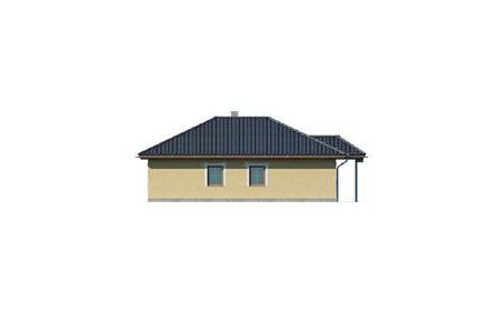 A single-storey house with a hipped roof. The modern arrangement of the interior catches attention at first sight with its interesting combination of a kitchenette with a living room, which enables constant contact between the people moving around both parts of the house. The way the ground plan is divided up satisfies all the living requirements of a family of four.